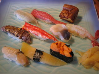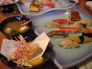 | 小樽「握 なか一」 | なか一特選にぎり 4200円也 | 「かに汁」はバスの一日乗車券でサービス |